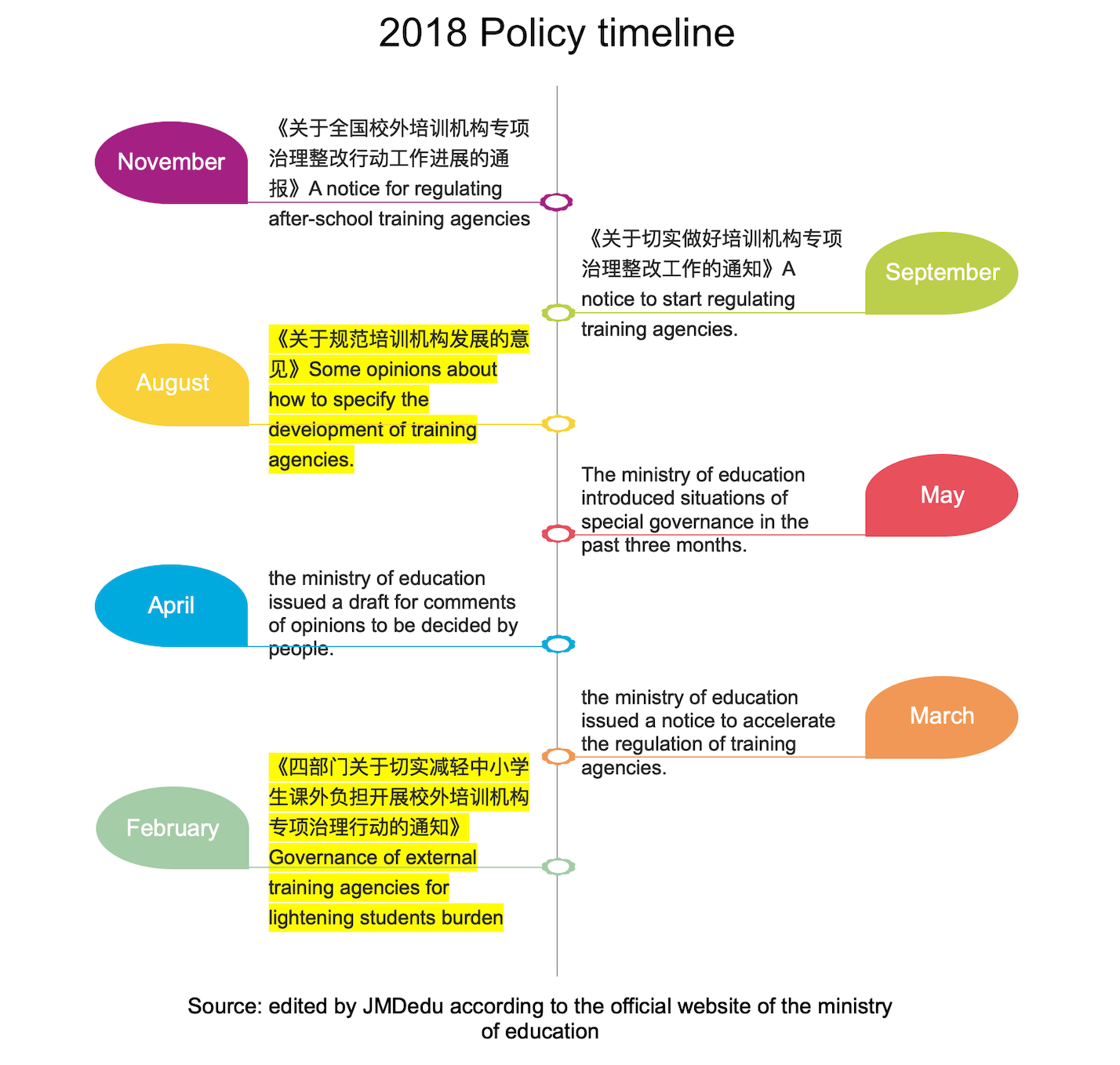 Besides, a stricter regulation system about after-school tutoring schools cannot be overlooked. According to the research by JMDedu, the Ministry of Education announced nearly 10 policies to emphasize the importance of regulation for these private training agencies.